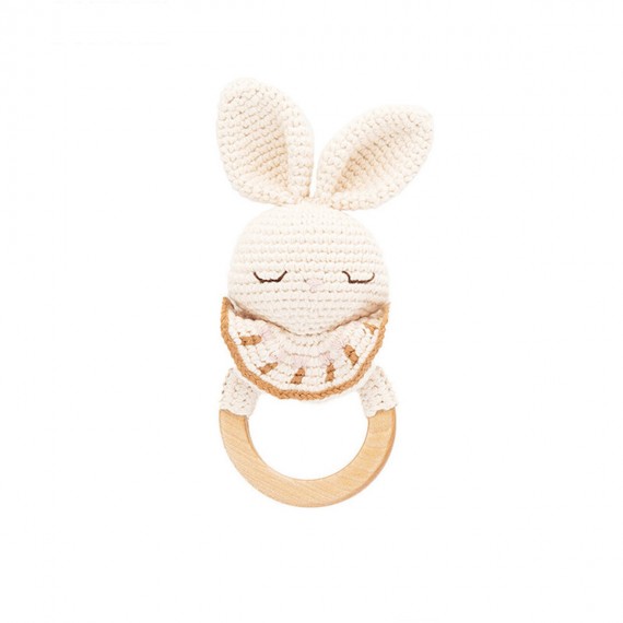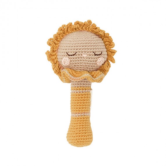 Ce hochet classique avec sa petite tête de chat est facile à manipuler pour les bébés et fait du bruit grâce à son grelot quand on le secoue.