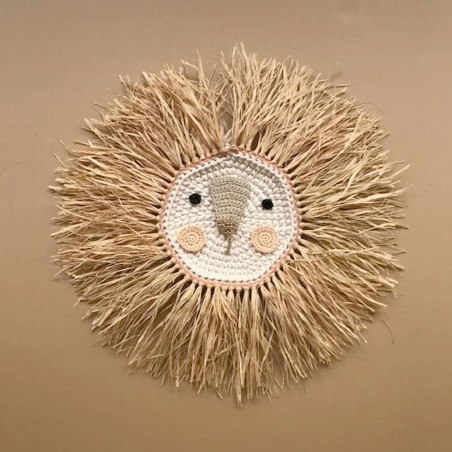 Lion artisanal fabriqué à la main avec une corde de coton et du raphia.
