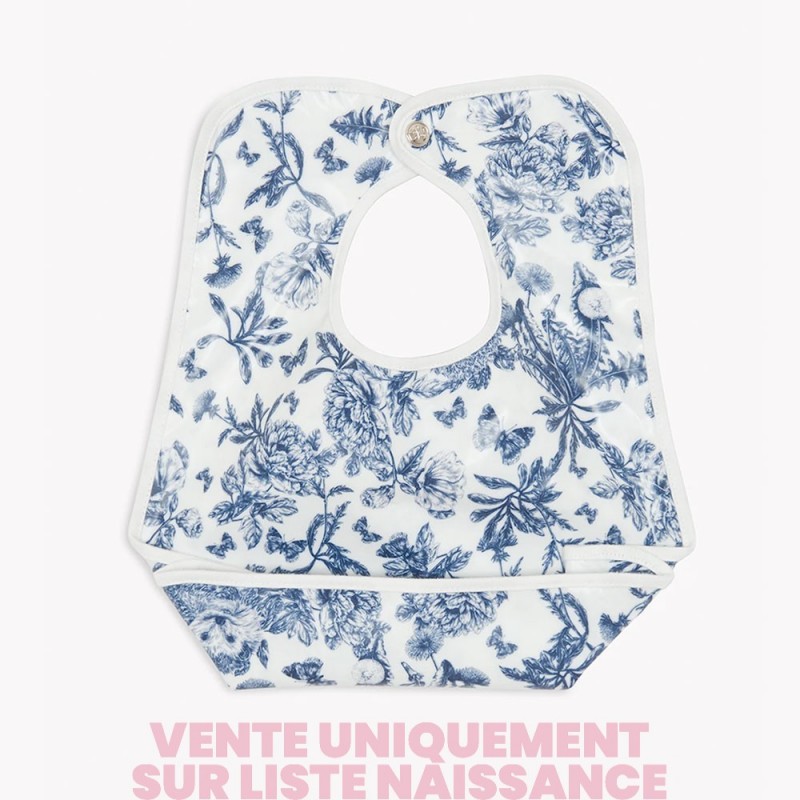 Tartine et Chocolat - Bavoir toile enduite Imprimé inspiration Toile de Jouy bleu