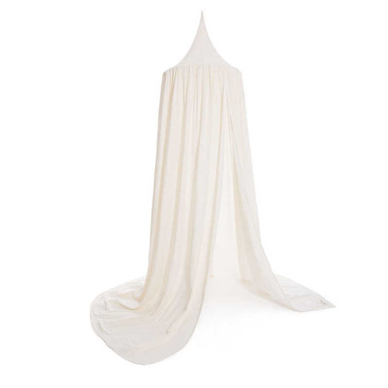 Sa double gaze de coton bio, léger mais résistant, et ses délicats drapés semblant flotter font de ce ciel de lit la décoration de lit ou de petit coin lecture idéale. Les enfants s'y sentiront en toute sécurité pour s'endormir calmement.