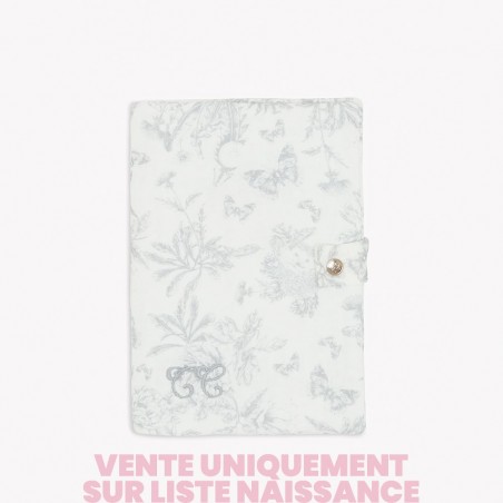 Housse de carnet de santé imprimé inspiration Toile de Jouy gris, dessinée par Tartine et Chocolat. Élégante et pratique, elle protège le carnet de santé de votre enfant tout en ajoutant une touche de charme classique. Dimensions : 16 x 23 cm.