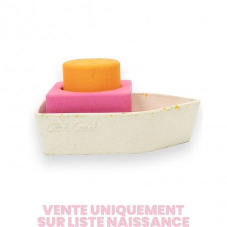Oli & Carol - Jouet de bain et dentition - Bateau caoutchouc recyclé - Orange