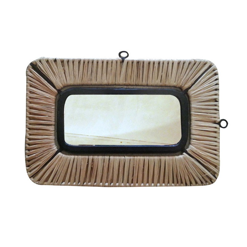 Miroir structure fer et tressage en raphia