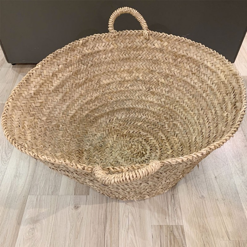 Pnier entièrement fabriqué à la main à partir de feuilles de palmiers tressées. Ce panier est parfait pour ranger de jouets, transporter des livres ou des coloriages.