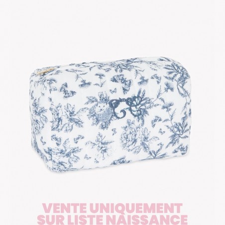 Trousse de toilette en imprimé Toile de Jouy bleu dessiné par Tartine et Chocolat. Son matelassage moelleux et son ouverture zippée en font un accessoire à la fois élégant et pratique.